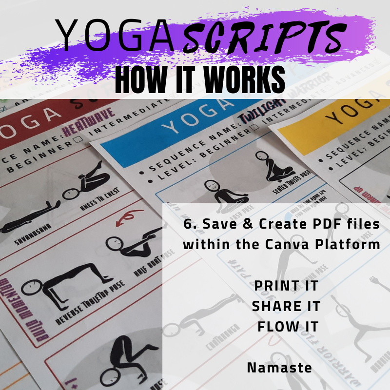 Finally Print & share your yoga class plans, all yoga script are fully printable